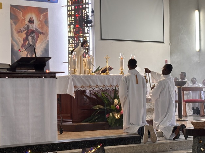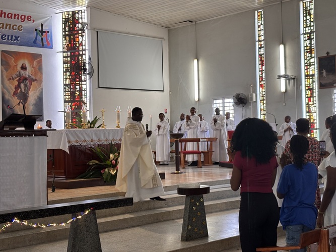Avant la lecture de l’évangile le prêtre a donné les dates de célébration des grandes fêtes religieuses pour l’année 2026.
