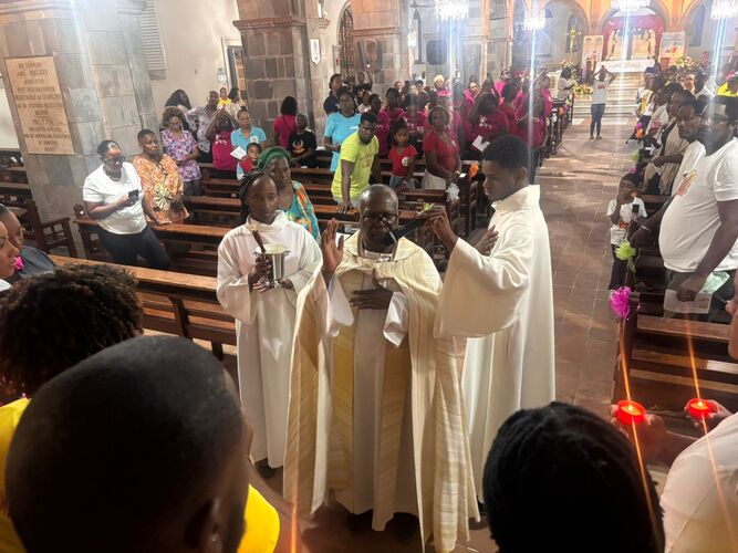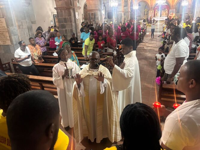 Dans le contexte de violence que connait malheureusement notre archipel, cette cérémonie de bénédiction organisée à la cathédrale de Basse-Terre, a été souhaitée par les carnavaliers pour s’assurer la protection du Seigneur durant tous les déboulés et sorties des groupes chaque week-end jusqu’aux jours gras.