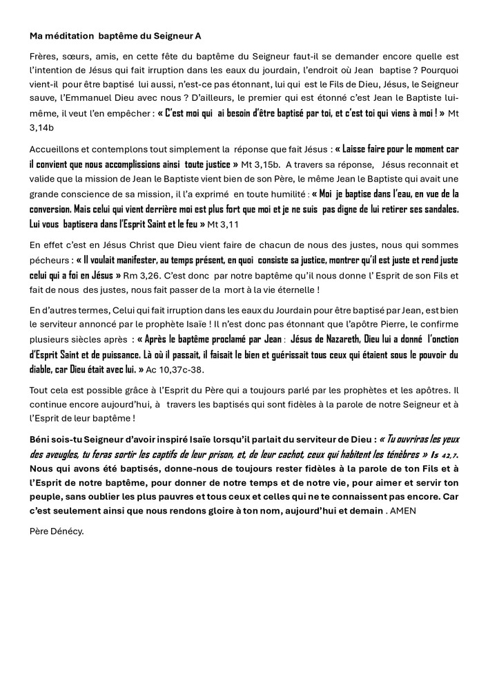La méditation de la Parole de Dieu, du jeudi 25 décembre 2025, Jour de Noël, par le Père André DENECY, curé de la paroisse de Lamentin.