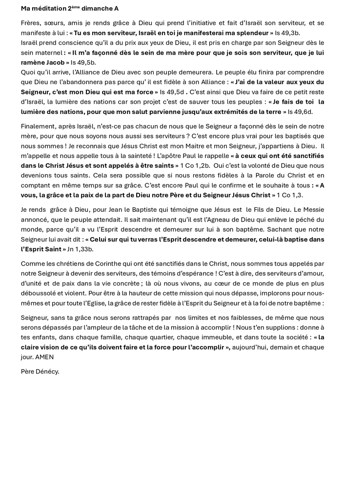 La méditation de la Parole de Dieu, du jeudi 25 décembre 2025, Jour de Noël, par le Père André DENECY, curé de la paroisse de Lamentin.