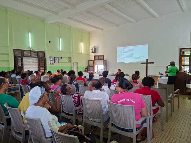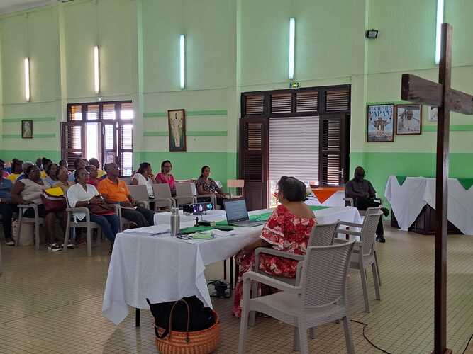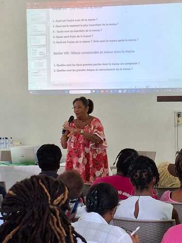 Après la mise en commun des travaux et un temps convivial autour d’une collation fraternelle, la synthèse a été présentée par Mme Rose-Hélène Laurent, coordinatrice de la catéchèse de Capesterre-Belle-Eau. Elle a été suivie d’un enseignement du Père Marc-Henry Jasmin, qui a apporté un éclairage approfondi sur les différentes parties de la messe et les attitudes à adopter pour mieux la vivre. La matinée s’est conclue par le mot de conclusion du Père Tibeau, un temps de prière et un chant final. Les participants sont repartis dans la joie, renouvelés dans leur engagement et conscients de l’importance d’une vie spirituelle profondément enracinée dans l’Eucharistie, afin de mieux témoigner auprès des enfants et des familles qui leur sont confiés.