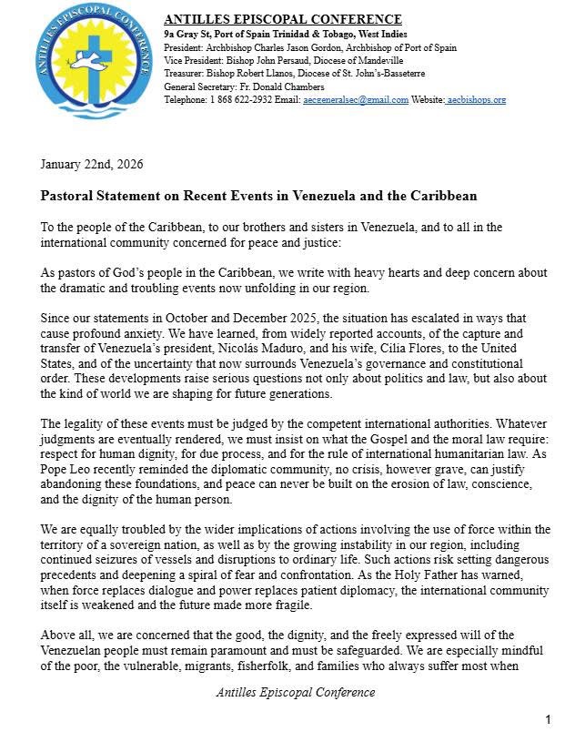 #PrayForVenezuela #CaribbeanForPeace #AECBishops #JusticeAndPeace #Solidarity