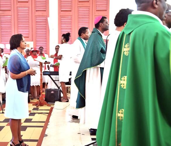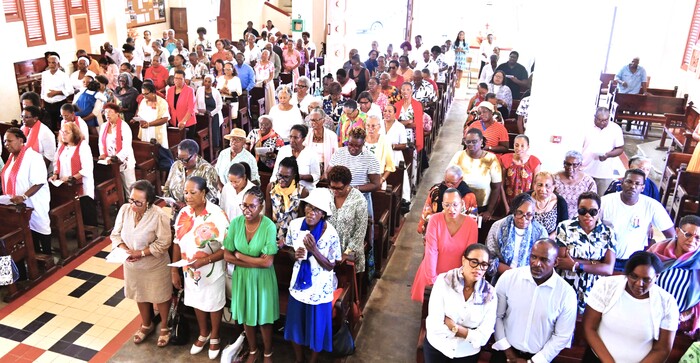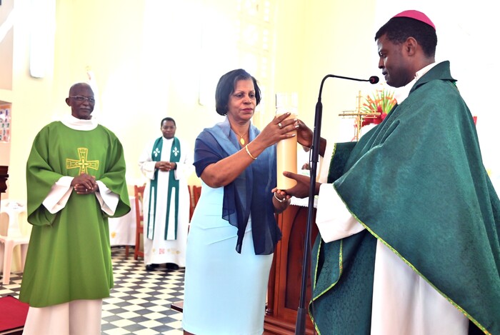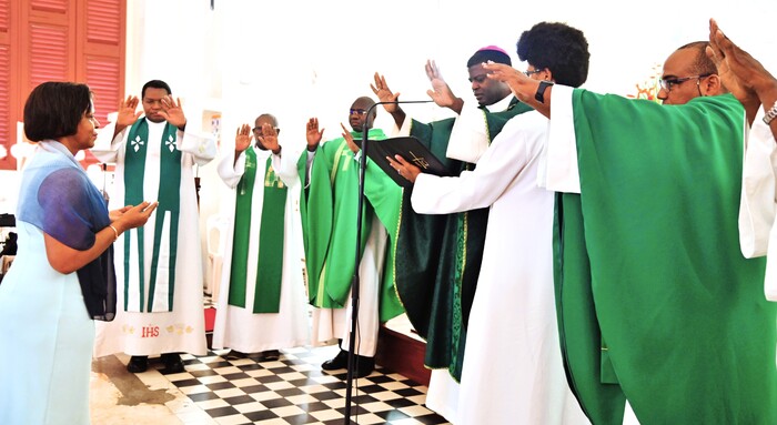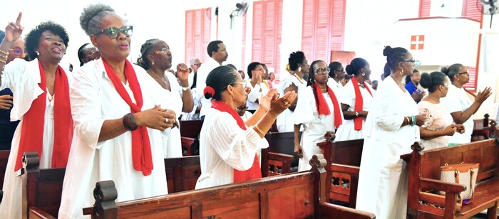 C’était jour de fête à l’église Saint Jean-Baptiste du bourg de Baie-Mahault, dimanche après-midi 25 janvier 2026. La messe d’action de grâce et d’accueil de la nouvelle Bergère du Renouveau Charismatique Diocésain, était annoncée pour 15h, mais dès 13h, les responsables de groupes, noyaux et soutiens étaient déjà là pour des temps de louange, de prières et d’intercession, pour se préparer à ce qui allait être vécu.