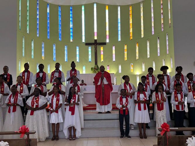 Alors que se déroulait en même temps les 80 ans de l’ACE (Action Catholique de l’Enfance) à l’église Saint-Pierre et Saint-Paul, des confirmands ont dit comment leurs engagements en église les ont aidés. « Grâce à l’ACE, j’ai pris confiance en moi, j’ai appris à m’exprimer et à aller vers les autres. Être servante d’autel m’aide à être plus proche de Dieu, à aider le prêtre pendant les célébrations et à rester bien éveillé pendant les messes » a témoigné l’une des confirmée. « Avec les scouts, j’aime partager les moments en communauté, réfléchir à l’endroit où établir le campement, participer aux jeux et aux activités sportives, prier et chanter ensemble » a pu citer aussi le Vicaire Général. « Lire à la messe m’a permis de mieux m’exprimer en public et de vaincre ma timidité » a confié un autre de ces jeunes ayant reçu le sacrement de la confirmation.