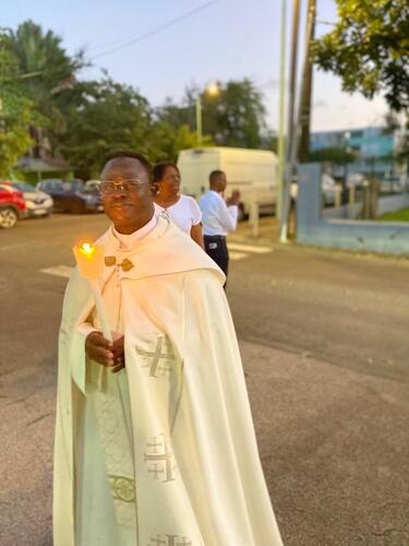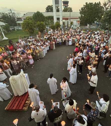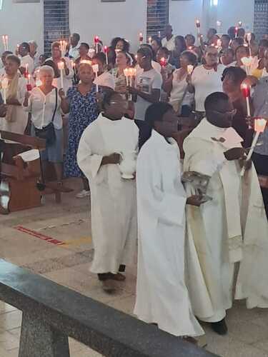 C’est dans la grande cour de la salle paroissiale de la paroisse Saint-Michel du Raizet que les fidèles se sont rassemblés à l’invitation du Père CAPO, curé de la localité, pour la bénédiction des cierges de la Fête de la Chandeleur, lundi soir 2 février 2026. Il y avait une belle foule de paroissiennes et paroissiens. L’on est venu aussi d’autres communes des environs pour vivre cette solennité.