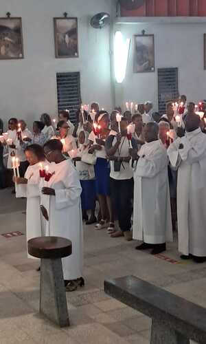 Après la bénédiction des cierges, l’assemblée a convergé en procession vers l’église où l’Eucharistie a été célébrée. Dans son homélie, Père CAPO a fortement invité tout un chacun à voir nos frères et sœurs avec les yeux, le regard du Christ.