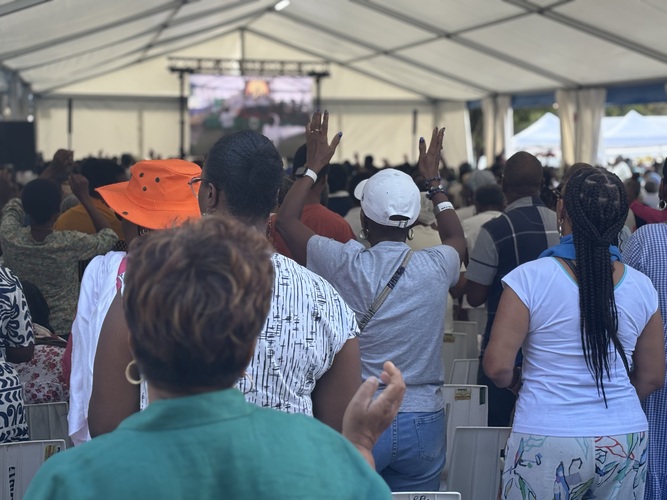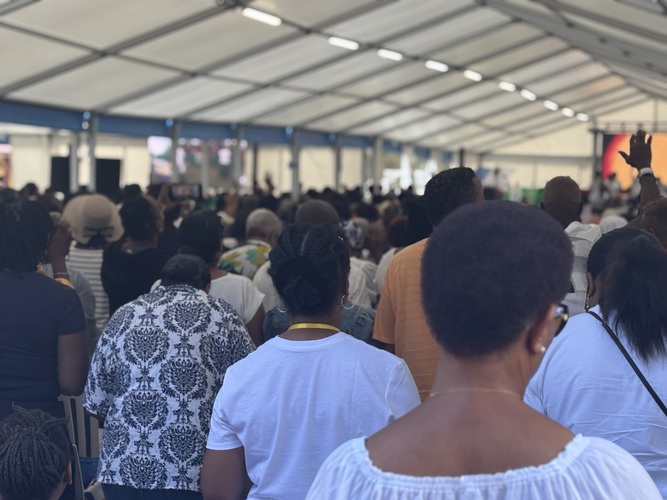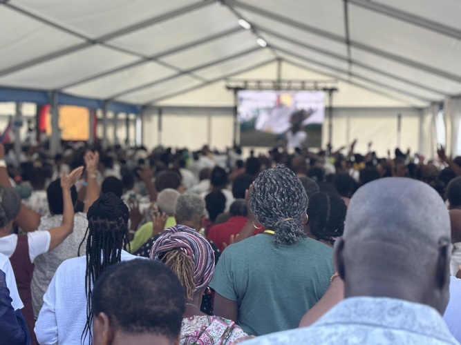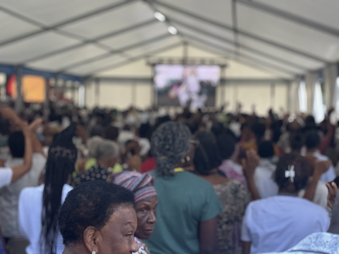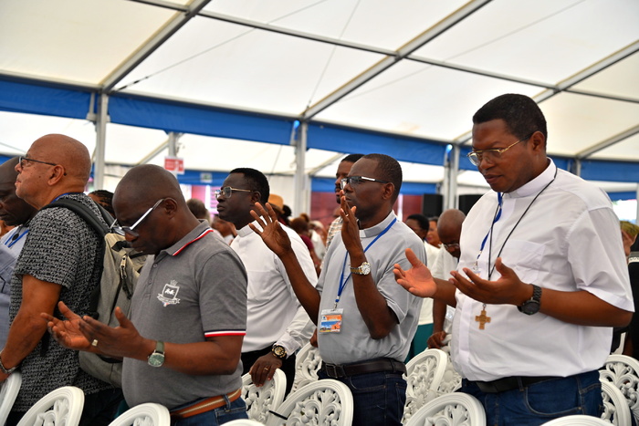 Ces deux journées ont été marquées par une profonde communion, une belle unité ecclésiale et une réelle soif des fidèles. Elles débutèrent chacune par la méditation du chapelet, avant un temps de louanges, suivi des deux enseignements de la matinée et des célébrations eucharistiques présidées aux mi-journées par Mgr Philippe GUIOUGOU, évêque de Guadeloupe. Entre la pause déjeuner et la reprise des activités l’après-midi, l’on pouvait se confesser ou tout simplement demander une écoute pour se confier et solliciter de l’aide, un accompagnement. Les deuxièmes parties de journée prévoyaient aussi deux enseignements, entrecoupées de temps de louanges et de prières d’intercession, d’exhortation, ou de ministères de guérison.