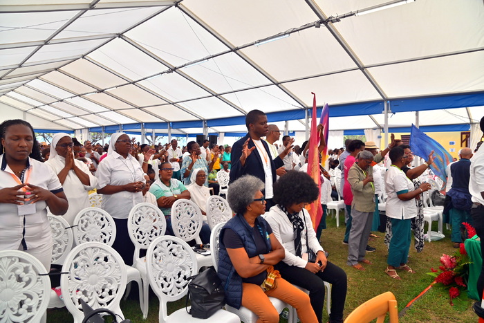 Avec ce temps fort de masse, l’Eglise catholique en Guadeloupe a adressé de puissants messages sous la mouvance de l’Esprit Saint. D’abord une grande unité autour de son Pasteur, Mgr Philippe GUIOUGOU, évêque de Guadeloupe. Sa capacité à fédérer ses mouvements, à organiser avec succès un évènement spirituel d’une telle ampleur en plein carnaval, à être à l’écoute des souffrances de son peuple avec la volonté affirmée d’y apporter des réponses. Son souci de notre jeunesse, l’une des priorités de l’évêque, et qui s’est traduite par une forte présence de nos jeunes à ce temps fort dont ils ont géré une partie de l’organisation. Les jeunes présents pour lesquels des prières d’intercession ont été prononcées avec des impositions des mains, pour qu’à travers eux et pour eux-mêmes, la jeunesse guadeloupéenne comprenne qu’elle est notre plus grande richesse et que notre Eglise, notre société compte sur elle dès maintenant.