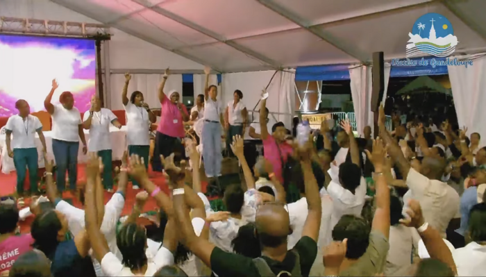 À l’approche du temps du Carême, les fidèles de Guadeloupe ont donc été invités à vivre deux journées intenses d’évangélisation, d’enseignements, de ministère de prières, d’intercession et de guérison. Organisé sous l’égide du diocèse de Diocèse de Basse-Terre et Pointe-à-Pitre, cet événement spirituel de grande ampleur a rassemblé lundi gras 16 février et mardi gras 17 février, durant ces deux journées entières plus de 3.000 fidèles. L’affluence a même approché les 3.500 personnes le 2ème jour. Une foule de paroissiennes et de paroissiens venus de toute la Guadeloupe, mais sans doute bien plus que cela, c’est le peuple de Dieu rassemblé qui a signifié ainsi sa volonté de préparer avec ferveur l’entrée dans ce temps fort de l’année liturgique.