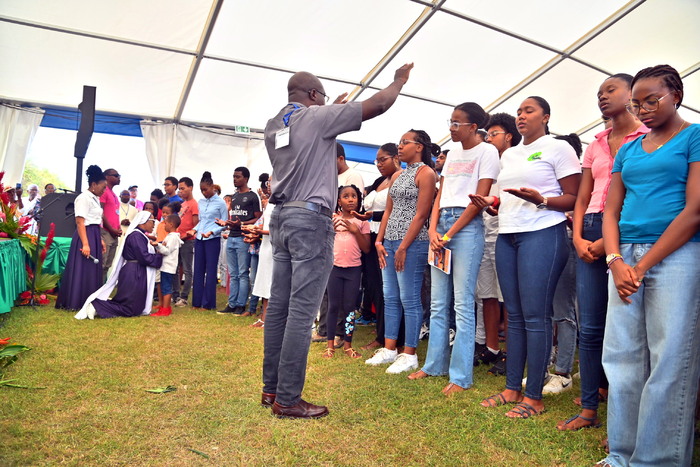 Il y a des signes qui ne trompent pas. Depuis l’ordination de Mgr Philippe GUIOUGOU comme nouvel évêque de Guadeloupe et ses nombreux messages en direction des jeunes du diocèse, peu à peu, ils répondent à l’appel et montrent leur volonté de prendre leur place au sein de l’Eglise. Cela se vérifie en paroisses et sur les réseaux sociaux où des groupes se créent, se structurent, s’organisent, réseautent. Temps de prières, de louanges, prestations de chorales de jeunes, les flyers fusent de partout pour annoncer leurs évènements. La présence massive et active des jeunes, dont l’investissement a pu être constaté aussi, dans les lectures, la logistique, l’assistance aux personnes plus âgées, a démontré un réel désir de servir et de s’impliquer dans la mission de l’Église.