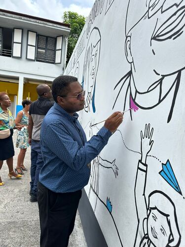 C’est le fruit d’un travail collaboratif qui a mobilisé des semaines durant, toute la communauté éducative de l’Externat Saint-Joseph de Cluny, à Pointe-à-Pitre. Au prix de tous ces efforts, la fresque est maintenant terminée. Elle s’est inspirée d’une pensée humaniste. Ubuntu « je suis parce que nous sommes » exprime la conviction que la personne humaine se construit dans la relation, la solidarité et l’attention au bien commun. Cette vision entre en profonde résonance avec la doctrine sociale de l’Église catholique, qui affirme la dignité de toute personne, la fraternité, la destination universelle des biens et la responsabilité envers les plus fragiles.