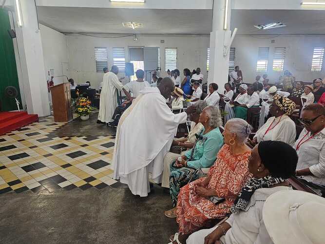 Méconnaissables nos malades, tant ils étaient beaux pour cette rencontre avec le seigneur. " A vous qui portez le poids de la maladie; sachez que le Seigneur ne vous regarde pas de loin, il se penche sur vous", leur adressait le curé. Encadrés par l'équipe de la pastorale de la santé, ils ont reçus l'onction d'huile, signe que la vie est plus forte que la mort, avant de repartir à la maison. Rappelons-nous que Jésus nous aime et que nous avons besoin de la guérison physique et intérieur en concluait le célébrant. Comme chaque dimanche à 10h, la chorale de l'Epiphanie a su mettre du baume dans le coeur de nos malades au cours de cette messe préparée pour eux.