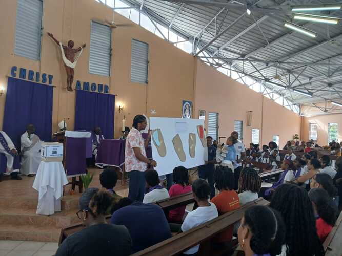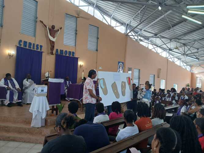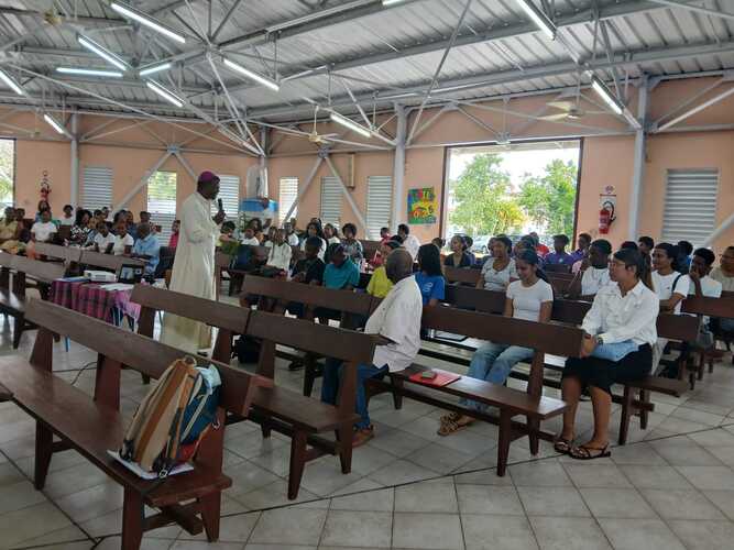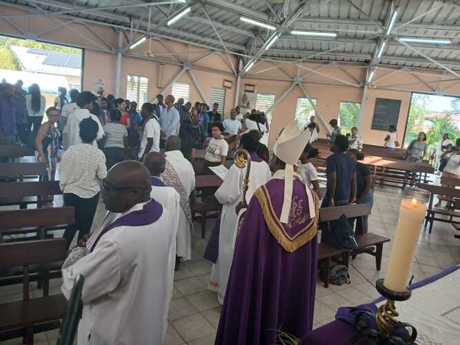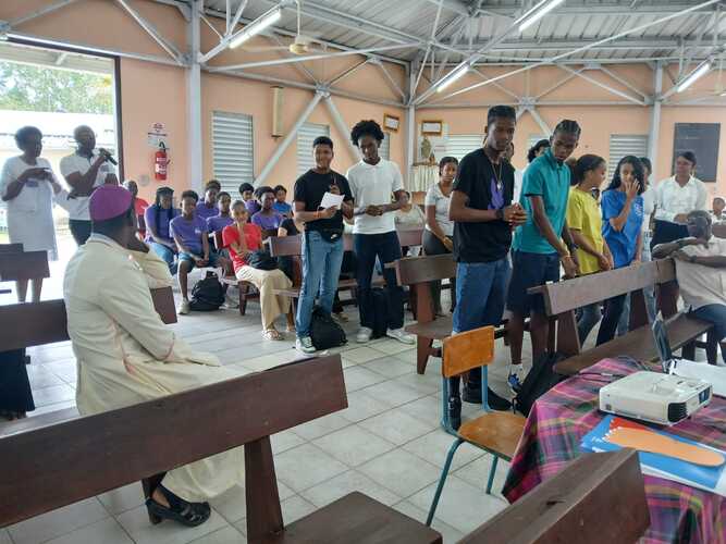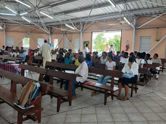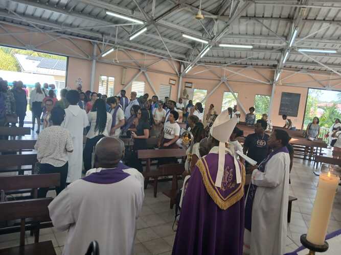 46 catéchumènes adolescents ont donc répondu présents samedi 28 février 2026, durant toute la journée à la chapelle de Pointe d’Or aux Abymes pour la récollection qui a précédé la célébration de leur appel décisif présidée par Mgr Philippe GUIOUGOU. Cette étape, rappelons-le, est essentielle dans leur cheminement vers le sacrement du baptême qu’ils sont appelés à recevoir au soir de la Vigile Pascale, le samedi veille du dimanche de Pâques.