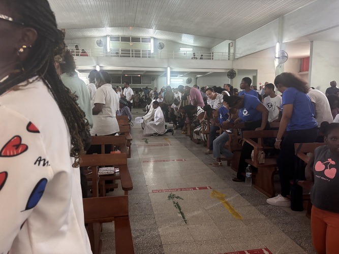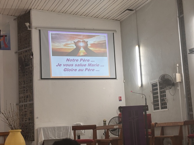 Après chaque station nous avons récité la prière des enfants de Dieu : Notre père, suivi du, Je vous Salue Marie pleine de grâce en clôturant avec Gloire au Père, au fils et au Saint esprit.