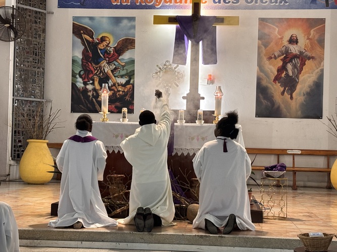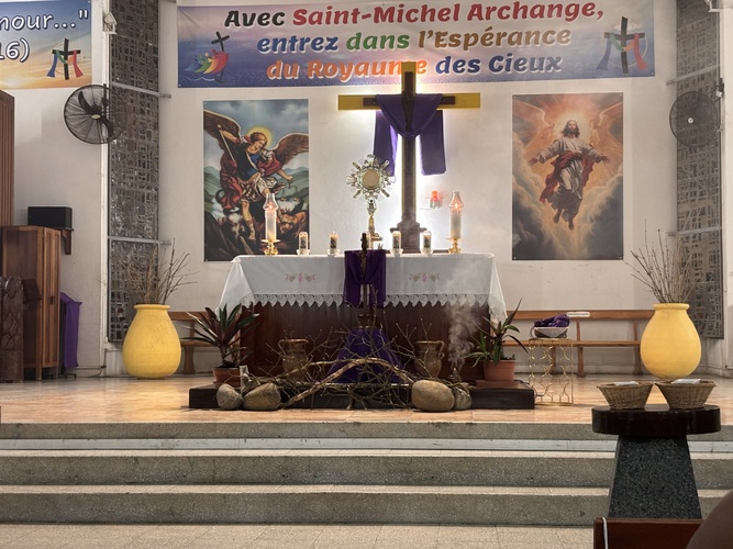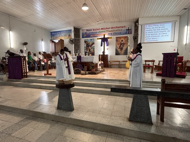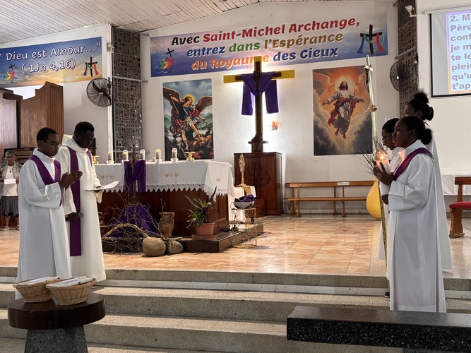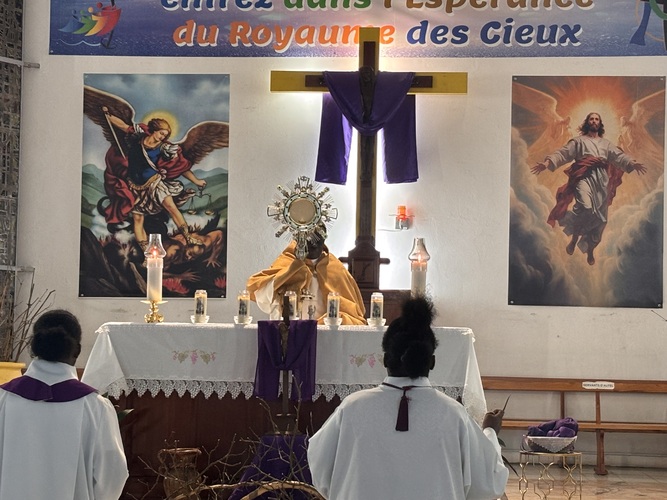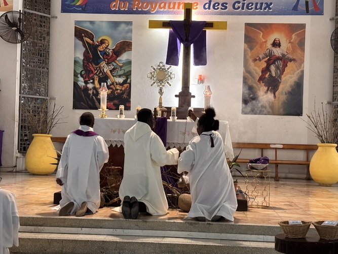 L’entrée en silence, signe de recueillement, a été vécue avec intensité par toute l’assemblée présente, les enfants, les catéchistes, la chorale VDA , et autres fidèles de la paroisse, présents au chemin de croix.