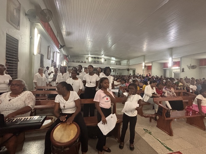 À la fin du chemin de croix nous avons pu profiter de l’exposition du Très Saint Sacrement , la soirée s’est poursuivie avec la veillée nocturne à l’occasion des 24 heures du Seigneur au Raizet.