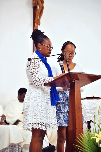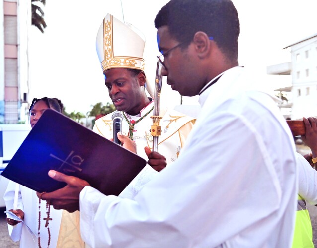 Chaque 25 mars, l’Eglise catholique célèbre la fête de l’Annonciation du Seigneur, plus précisément, l’annonce faite par l’Ange Gabriel à Marie : « Voici que tu vas concevoir et enfanter un fils, tu lui donneras le nom de Jésus ». C’est la fête du Seigneur qui s’incarne dans le sein de Marie. C’est cette solennité que les fidèles catholiques de Lauricisque ont voulu marquer par une procession qui s’est achevée par la célébration de l’Eucharistie par Mgr Philippe Guiougou en cette église. Ils étaient nombreux à arpenter les rues de ce quartier, une foule qui a chanté et prié avec son Pasteur à l’occasion de cette grande fête de l’Eglise.