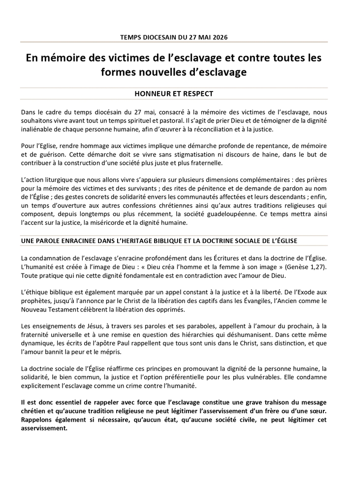 Lundi23/03Denier de l’Eglise : Le diocèse de Guadeloupe rassure les fidèles sur l’authenticité de sa campagne de dons en cours