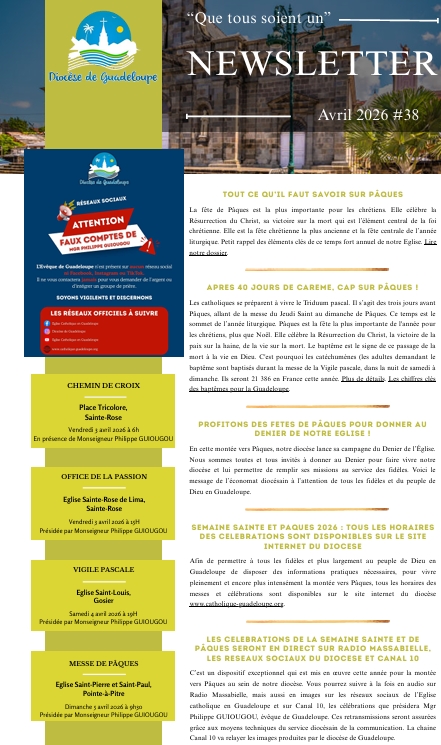 La newsletter du diocèse aux fidèles pour tout savoir de l'actualité et des temps forts de l'Eglise catholique en Guadeloupe.