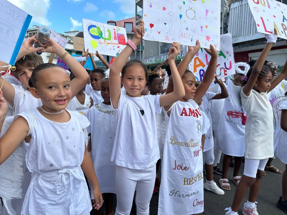 Vendredi06/02Pointe-à-Pitre : 800 élèves de l’Externat Saint-Joseph de Cluny ont marché pour la paix dans les rues de la ville