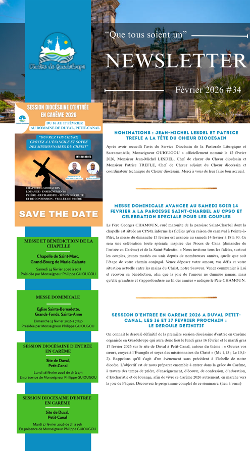 La newsletter du diocèse aux fidèles pour tout savoir de l'actualité et des temps forts de l'Eglise catholique en Guadeloupe.