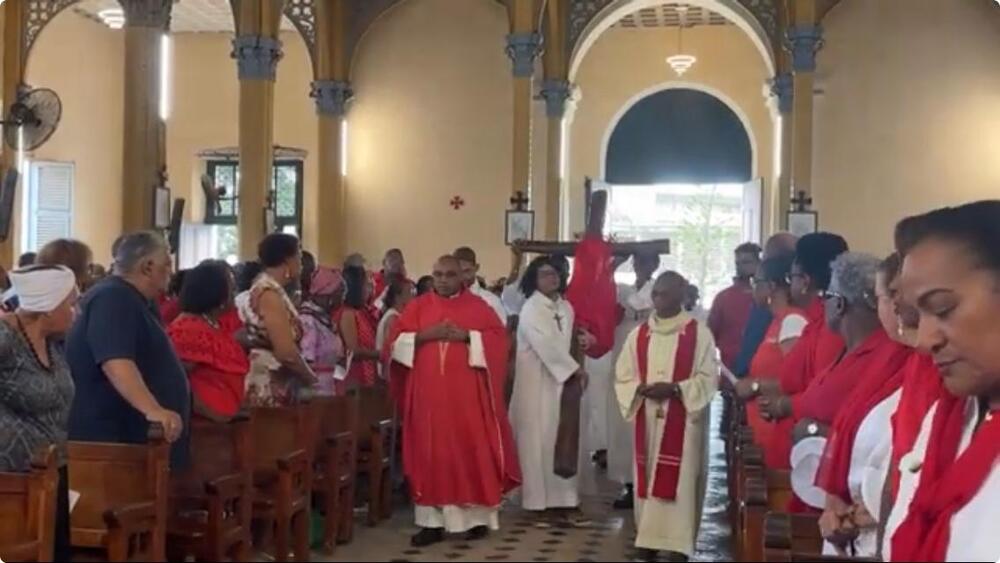 Vendredi03/04A Saint-Pierre et Saint-Paul, à Pointe-à-Pitre : les fidèles rassemblés pour la célébration de la Passion du Christ